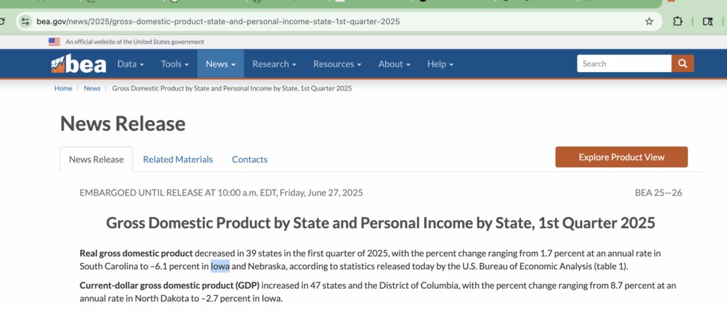 “… real GDP decreased at an annual rate of –6.1 percent in Iowa.”