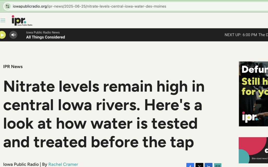 For some of us, the cursed few you might say, who’ve ended up working in and around Natural Resources (an oxymoron in Iowa) and Agriculture, the recent explosion of news around Iowa’s high nitrate levels that have lead to lawn watering bans (what better to make the average suburbanite angry?) has been anything but surprising.
