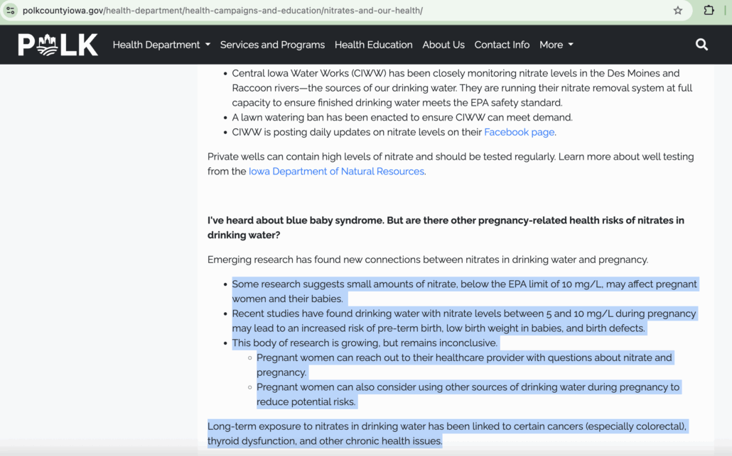 I mean the head of the Iowa DNR, gag, had this to say last year about nitrates and your water.