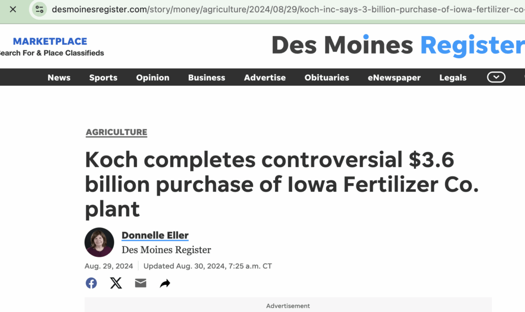 Hmmm … a 3.6 BILLION dollar deal for a fertilizer plant in Wever, Iowa. Hmm … could there possibly be any lobbyist down at the ole’ capitol who might know about this??? Well who could this be, say it ain’t so.