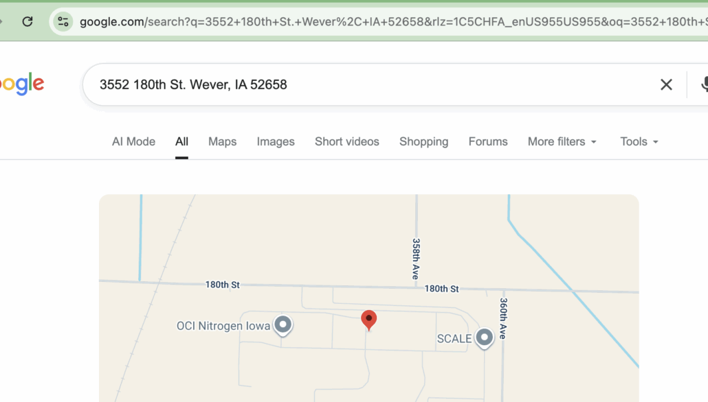 By George, what’s this address lookup up to for “Iowa Fertilizer”?